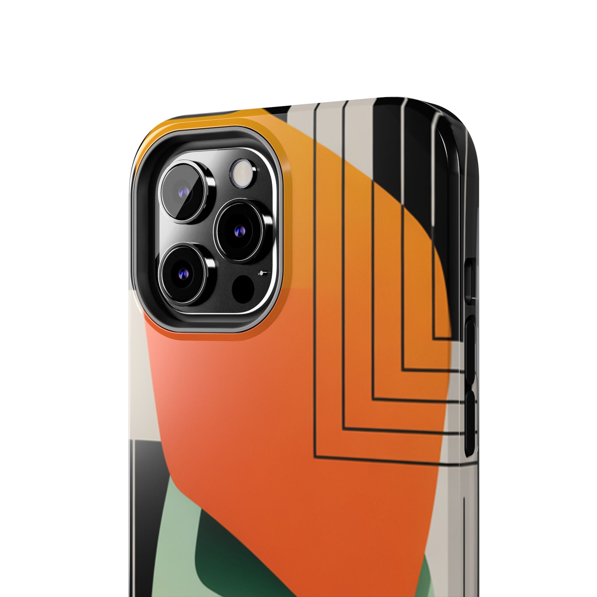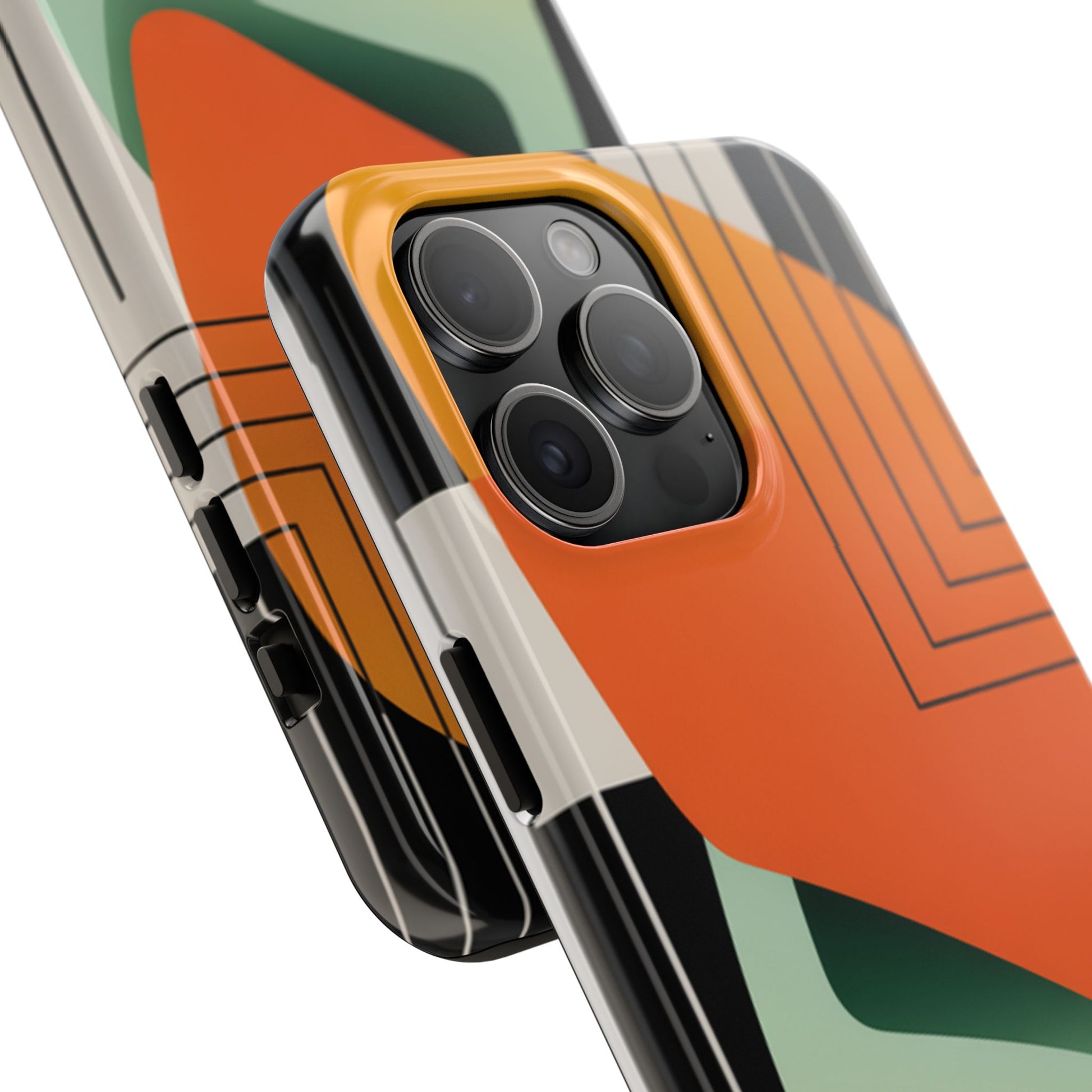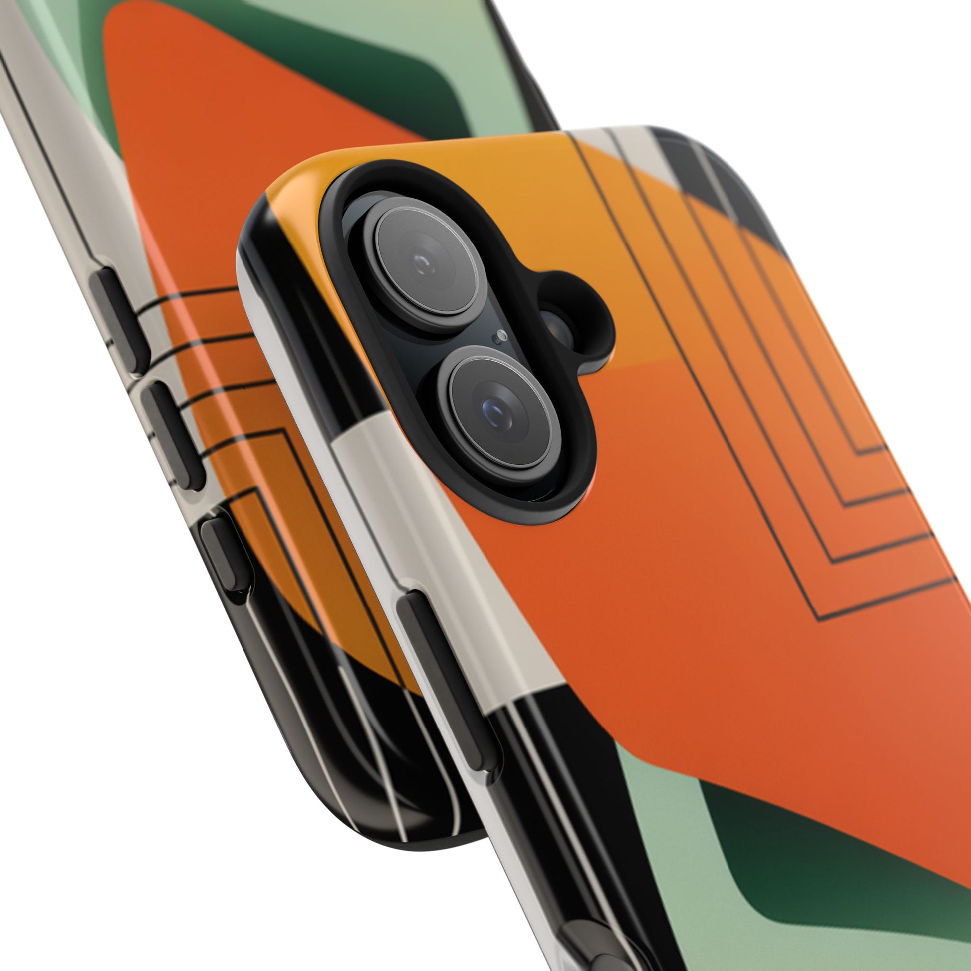 Abstract Geometric Tough Phone Case — Bold Orange & Green Modern Design