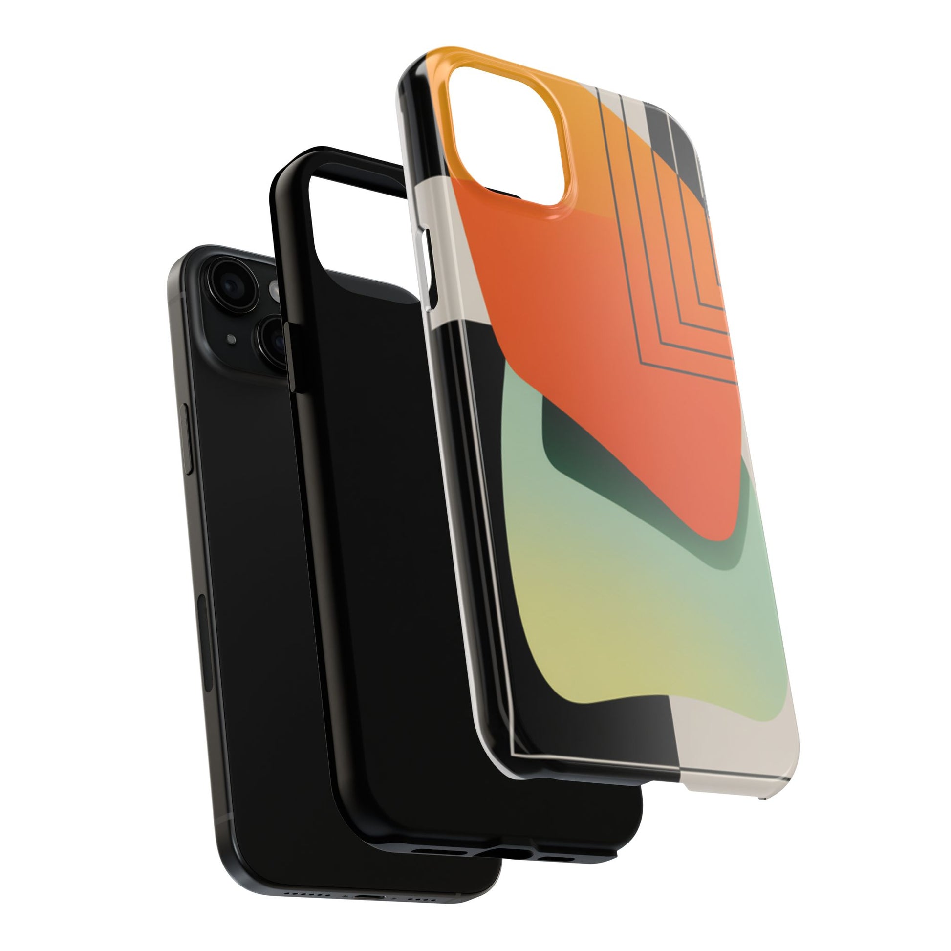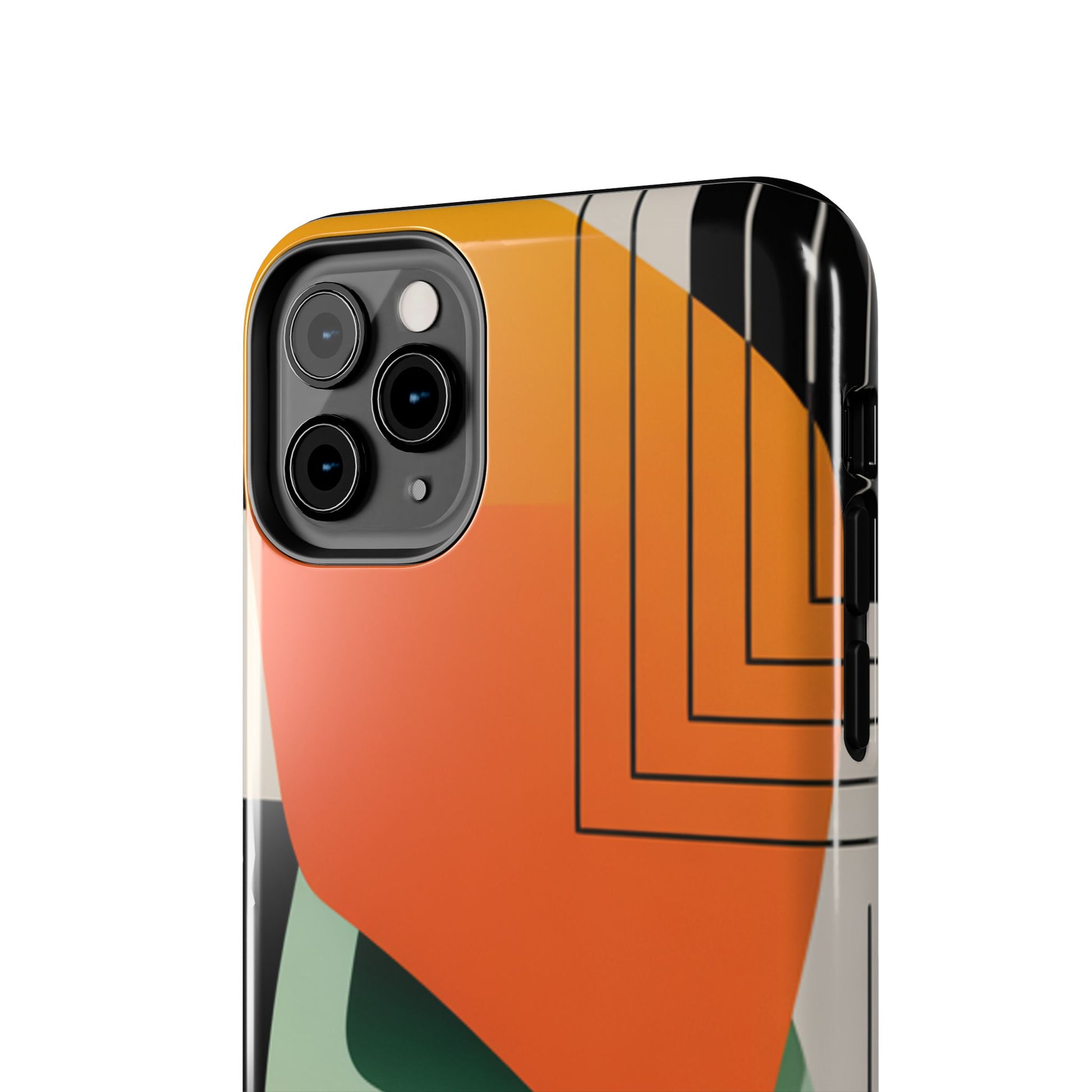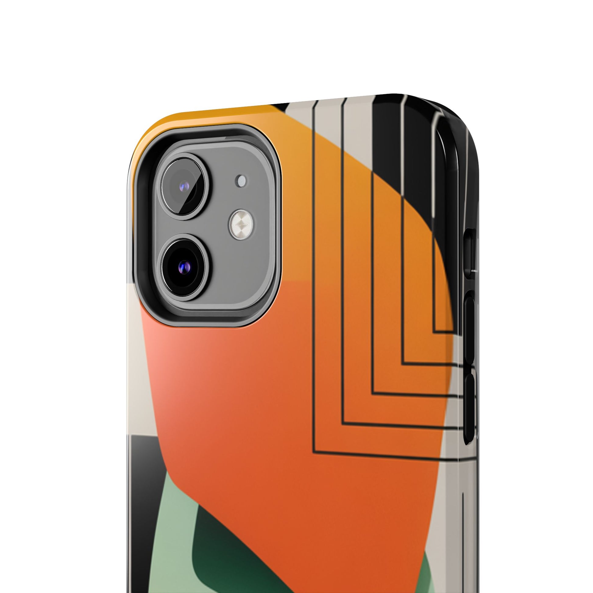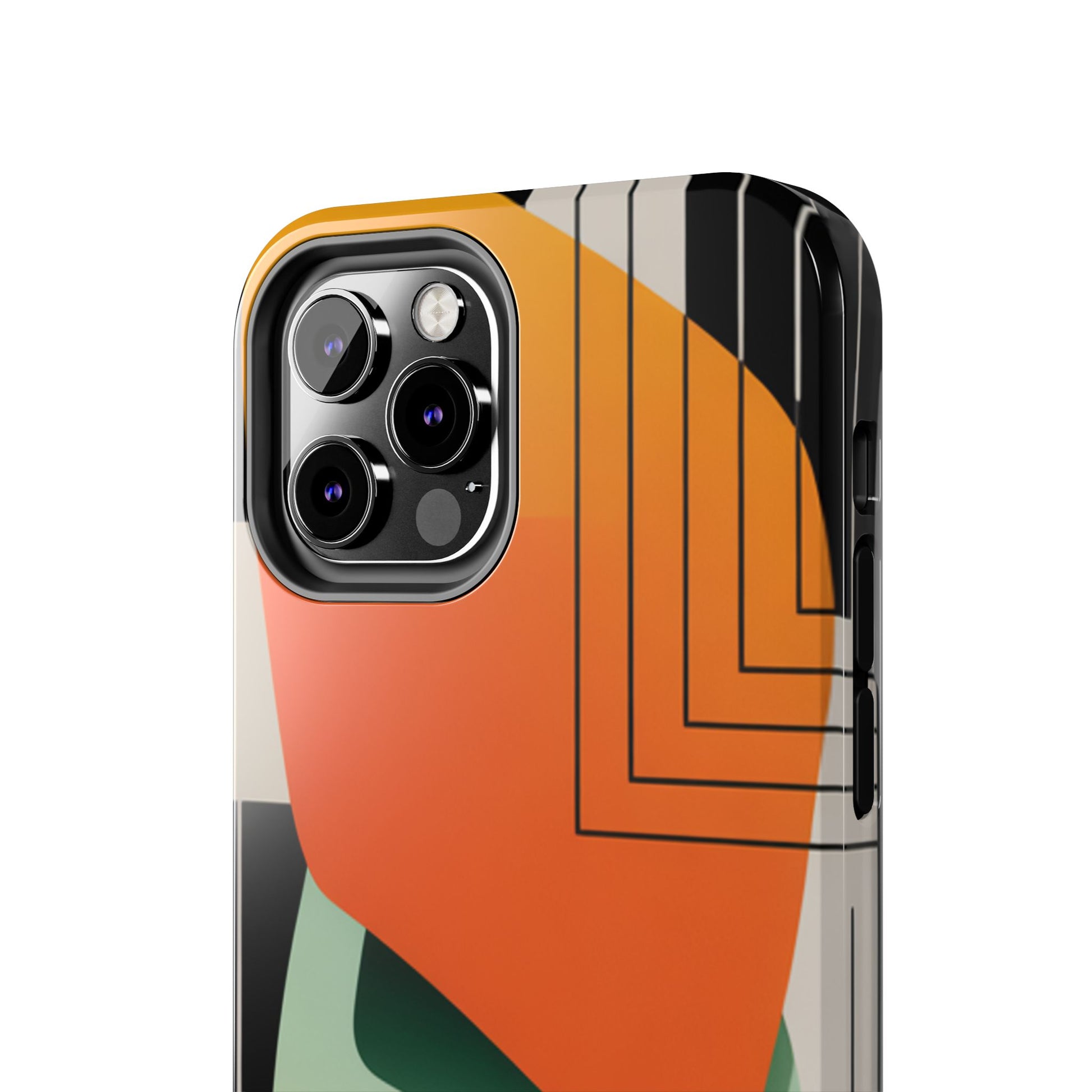 Abstract Geometric Tough Phone Case — Bold Orange & Green Modern Design