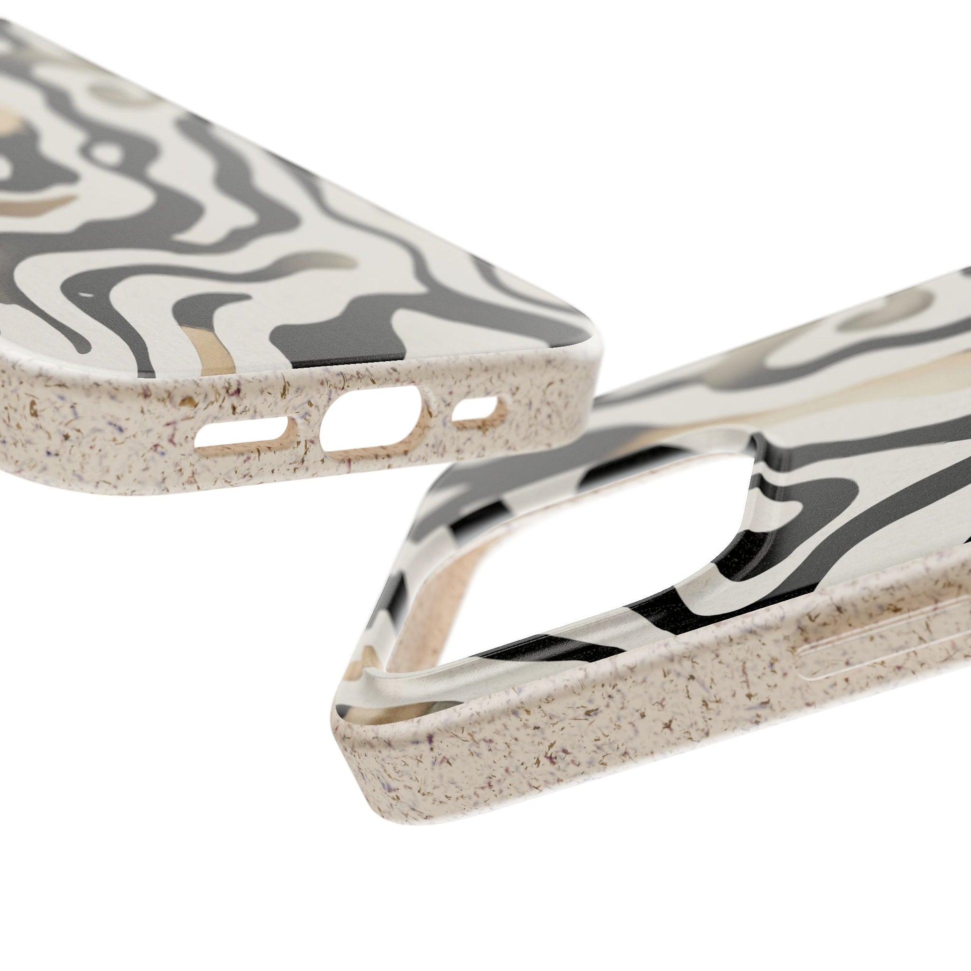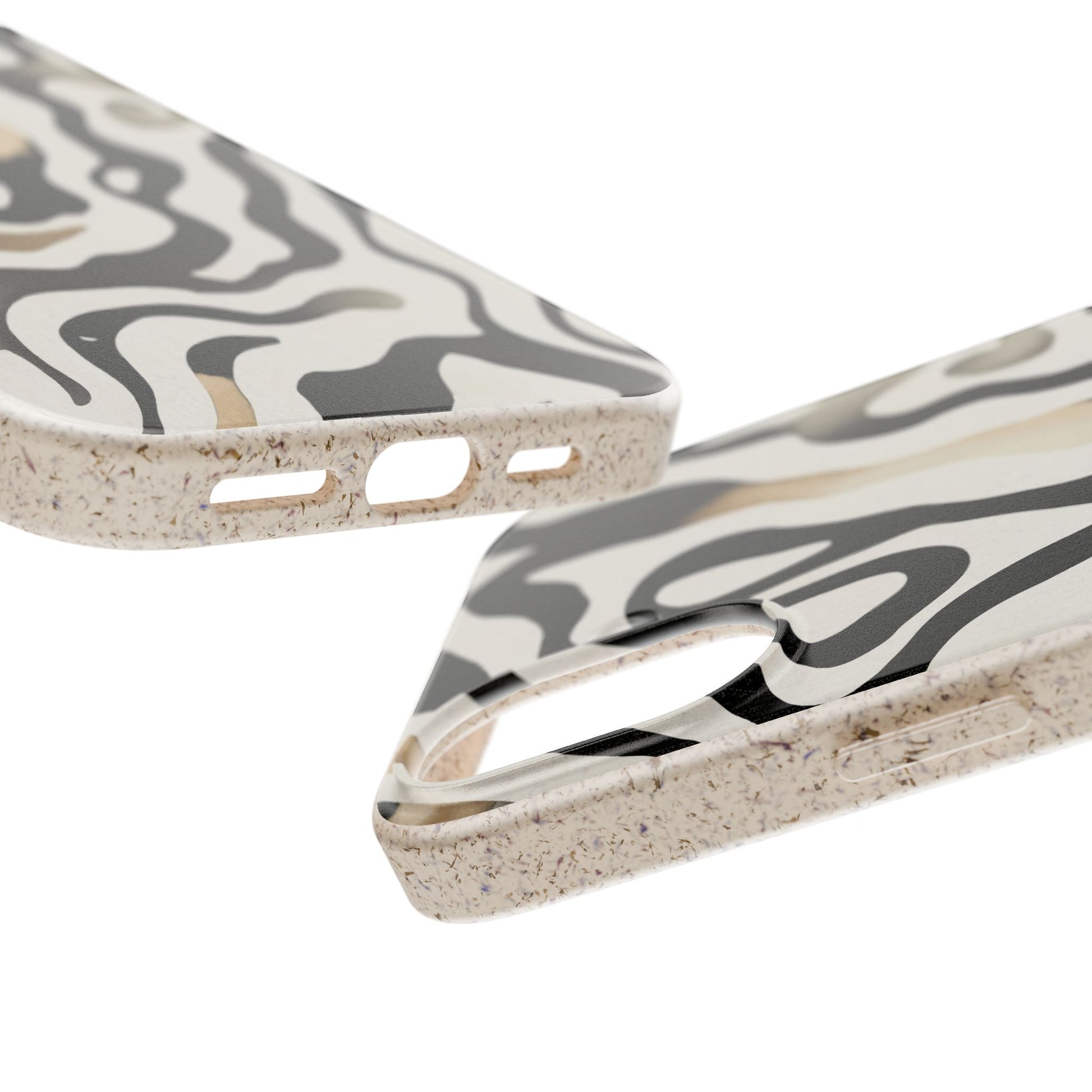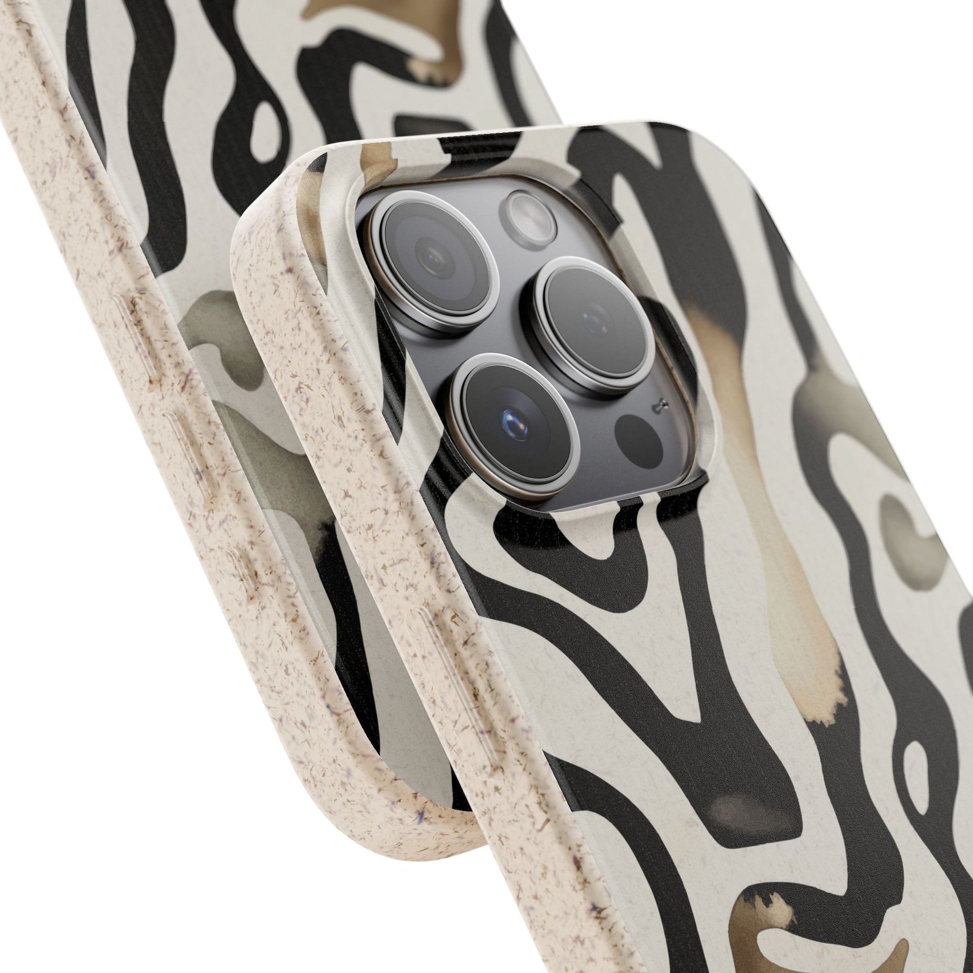Hold a little wildness in your hand. This matte-finished biodegradable phone case wraps your device in soft, flowing zebra-like swirls—neutral blacks, creams, and warm taupe washes that read both modern and organic. The slim, flexible shell absorbs knocks while staying featherlight. It’s made from plant-based PLA with bamboo fiber and PBAT for strength, so your style leaves a smaller footprint. The case supports Magsafe® wireless charging (lay flat when using chargers without a ring), includes precise cutouts for ports and buttons, and arrives with optional gift packaging. Expect a subtle natural scent and vivid print quality that keeps the pattern striking without glossy glare.