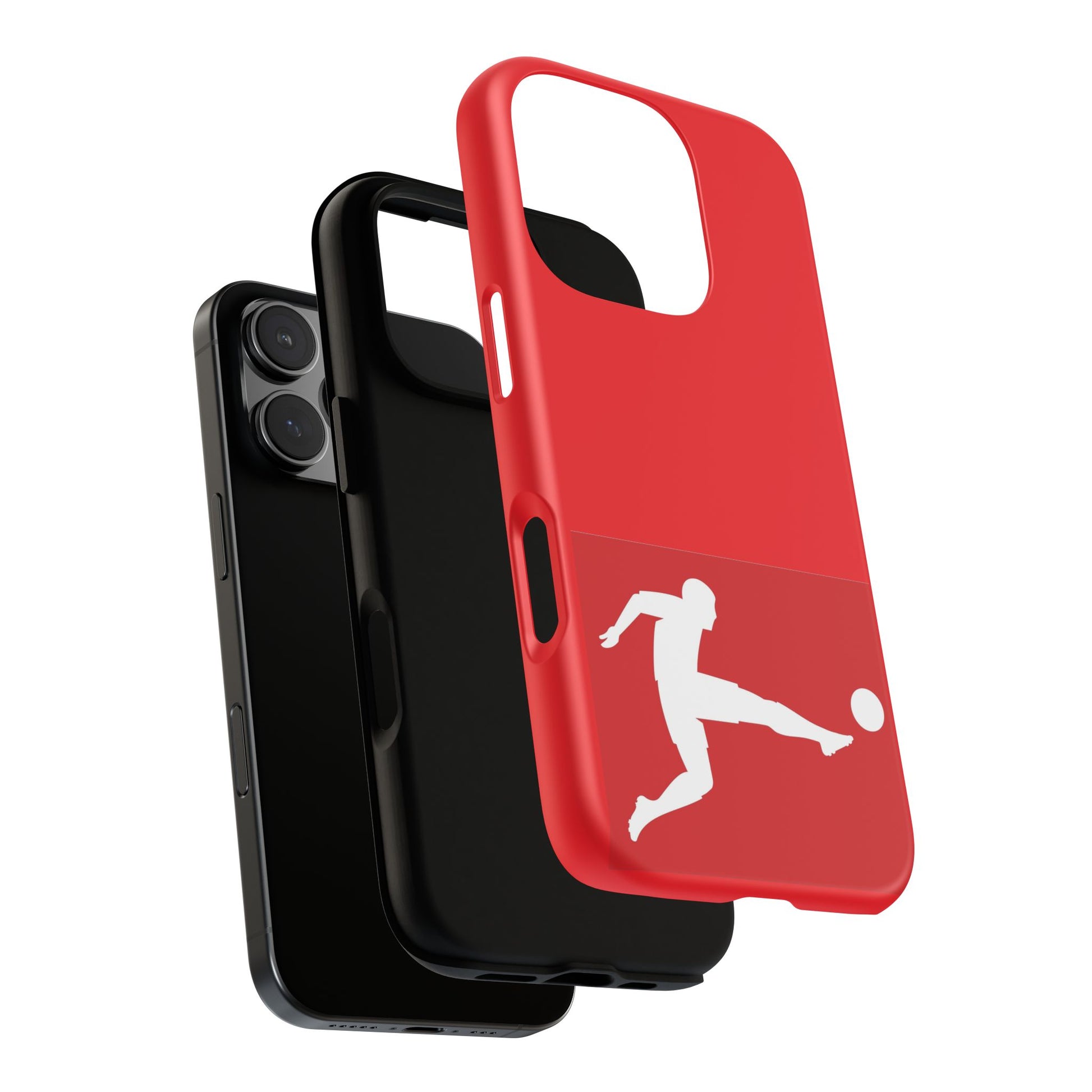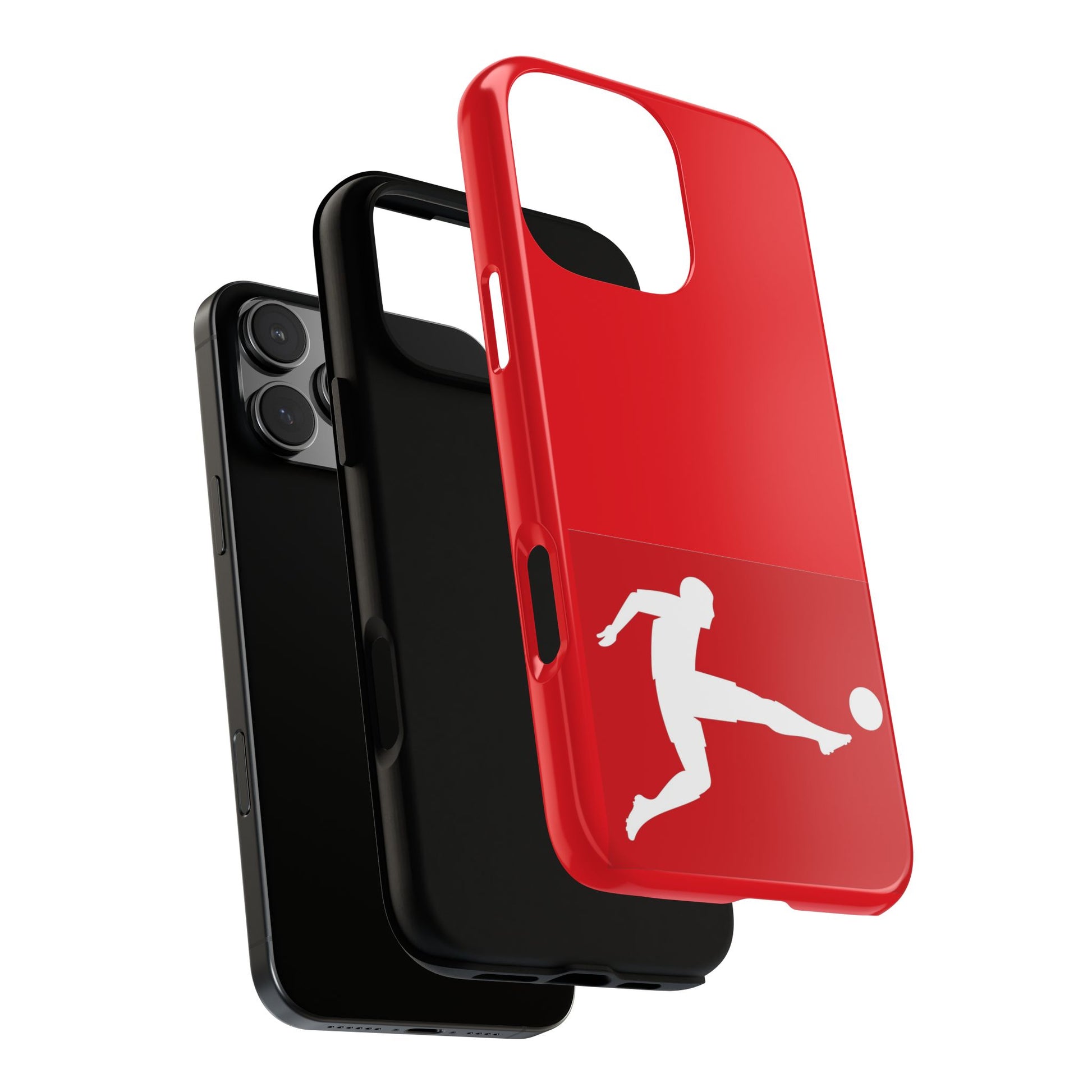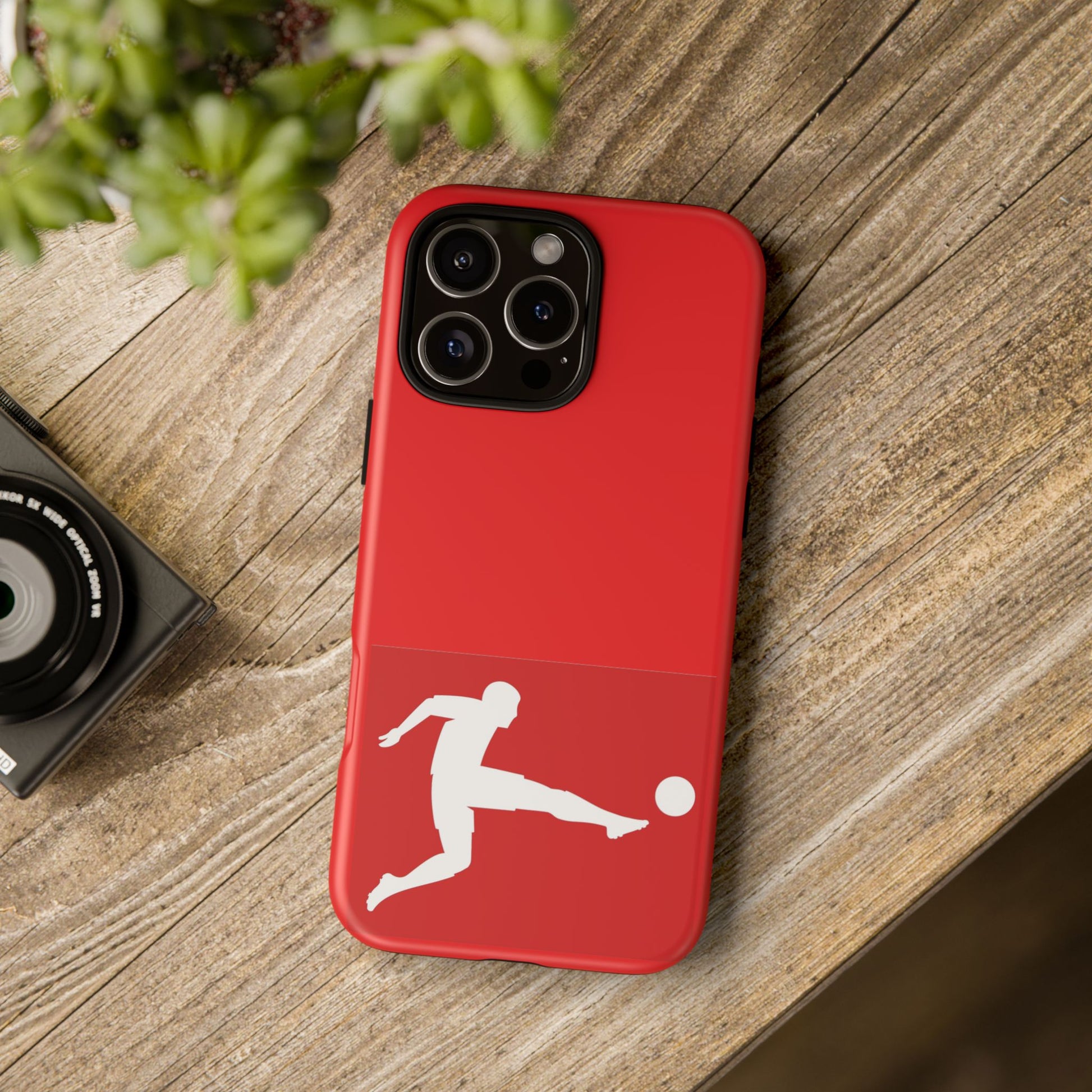 Soccer Player Tough Case — Protective Red Phone Case with Kicking Silhouette