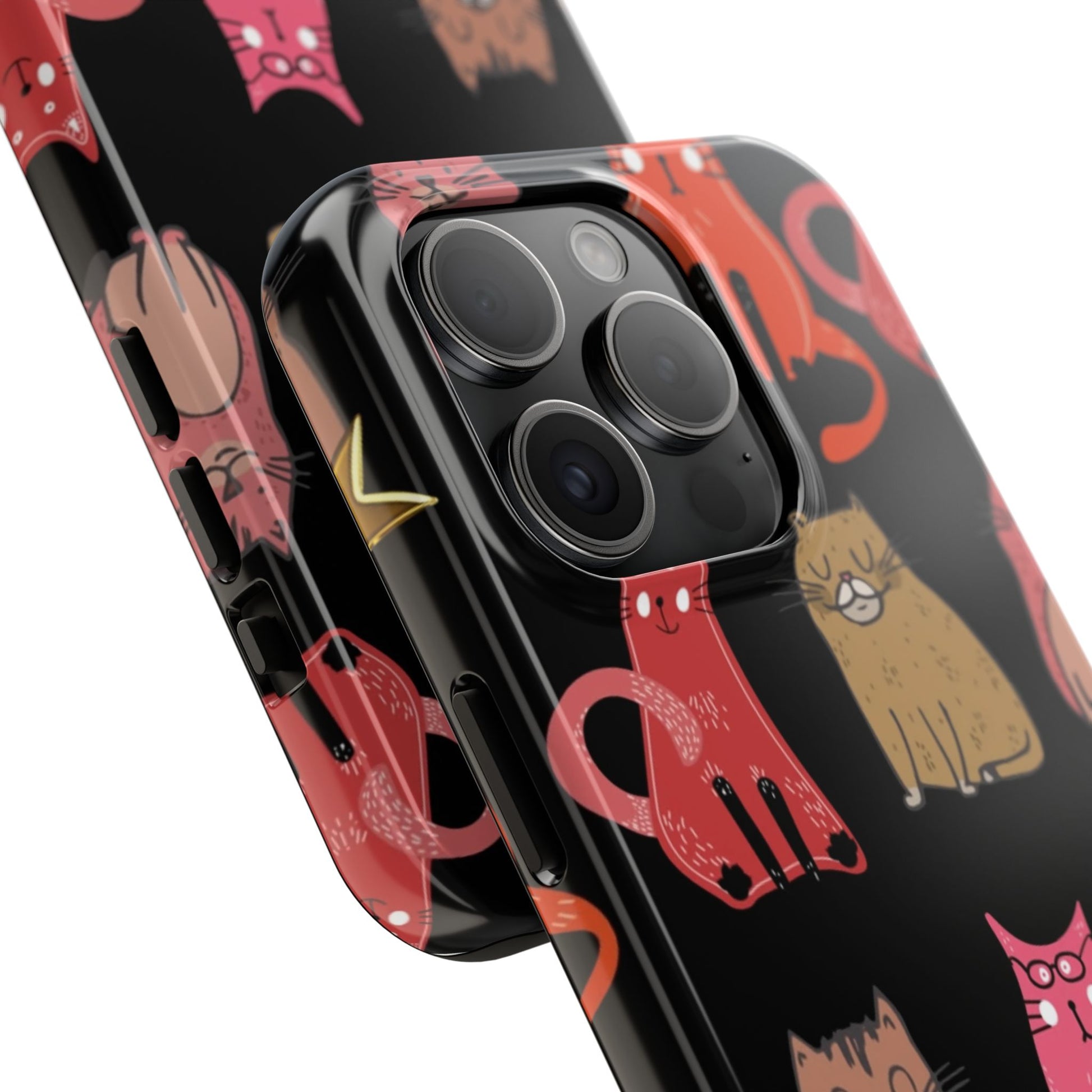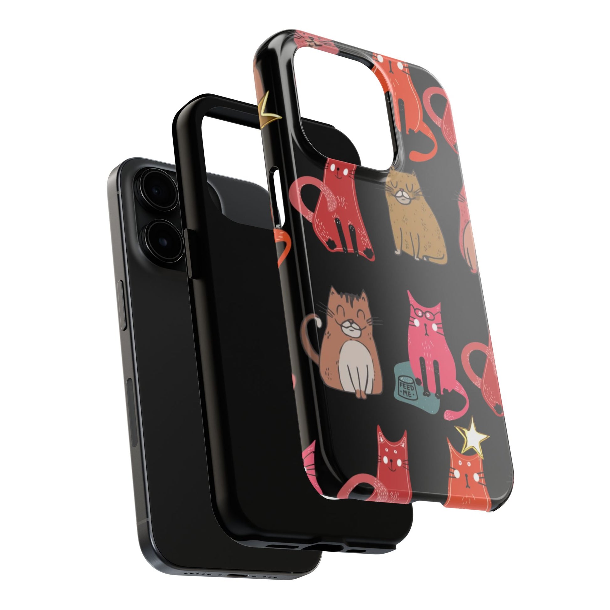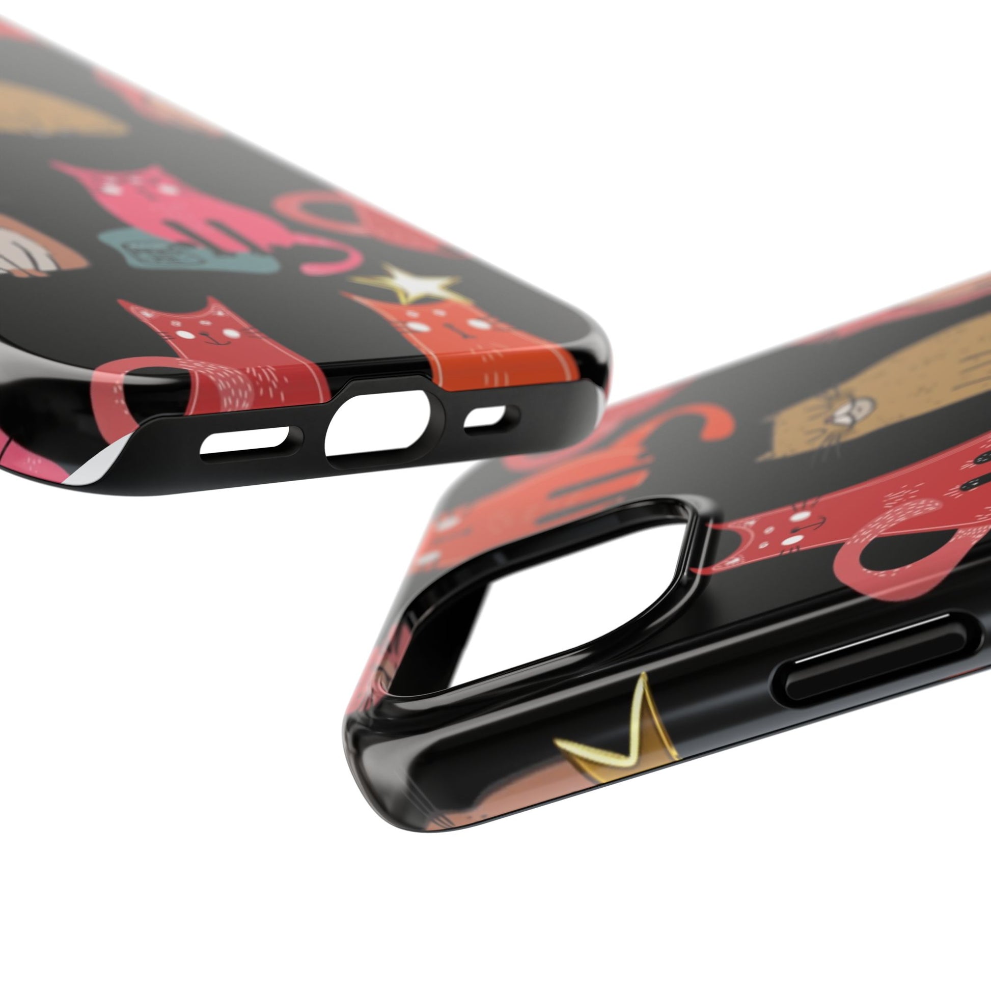 Starry Black Cats Tough Phone Case — Protective iPhone Case with Celestial Cat Pattern